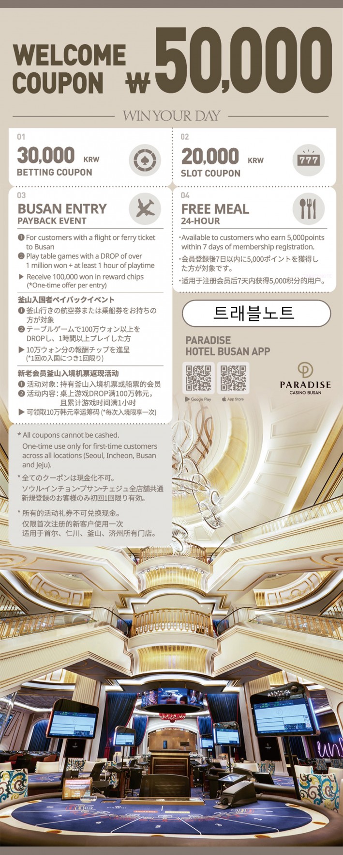 在可以眺望海云台海滩、豪华且开放的氛围为特征的百乐达斯娱乐场釜山可以度过美好的时光~